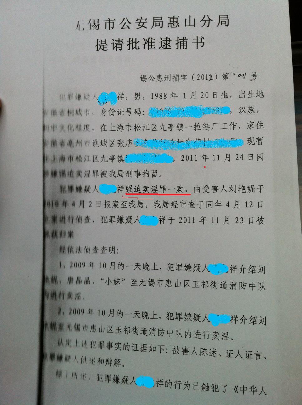 (公安批准逮捕意见,公安以“强迫卖淫为由将当事人刑事拘留,并以同一理由提请检察院逮捕。以下是公安机关法律文书)