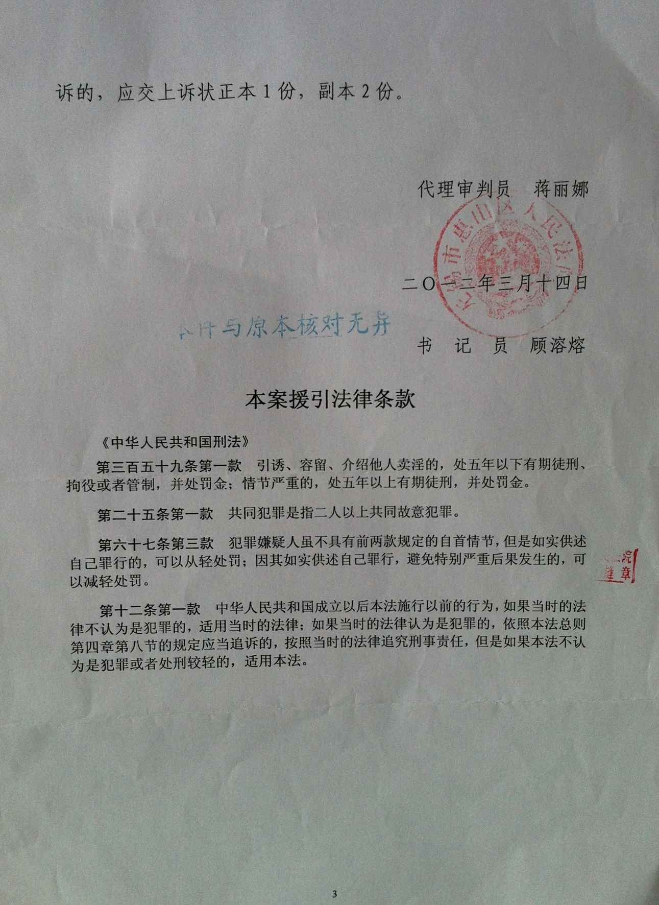 经过律师辩护后,法院同意检察院定性,按照较轻的“介绍卖淫罪”并从轻量刑,仅判处9个月刑期。