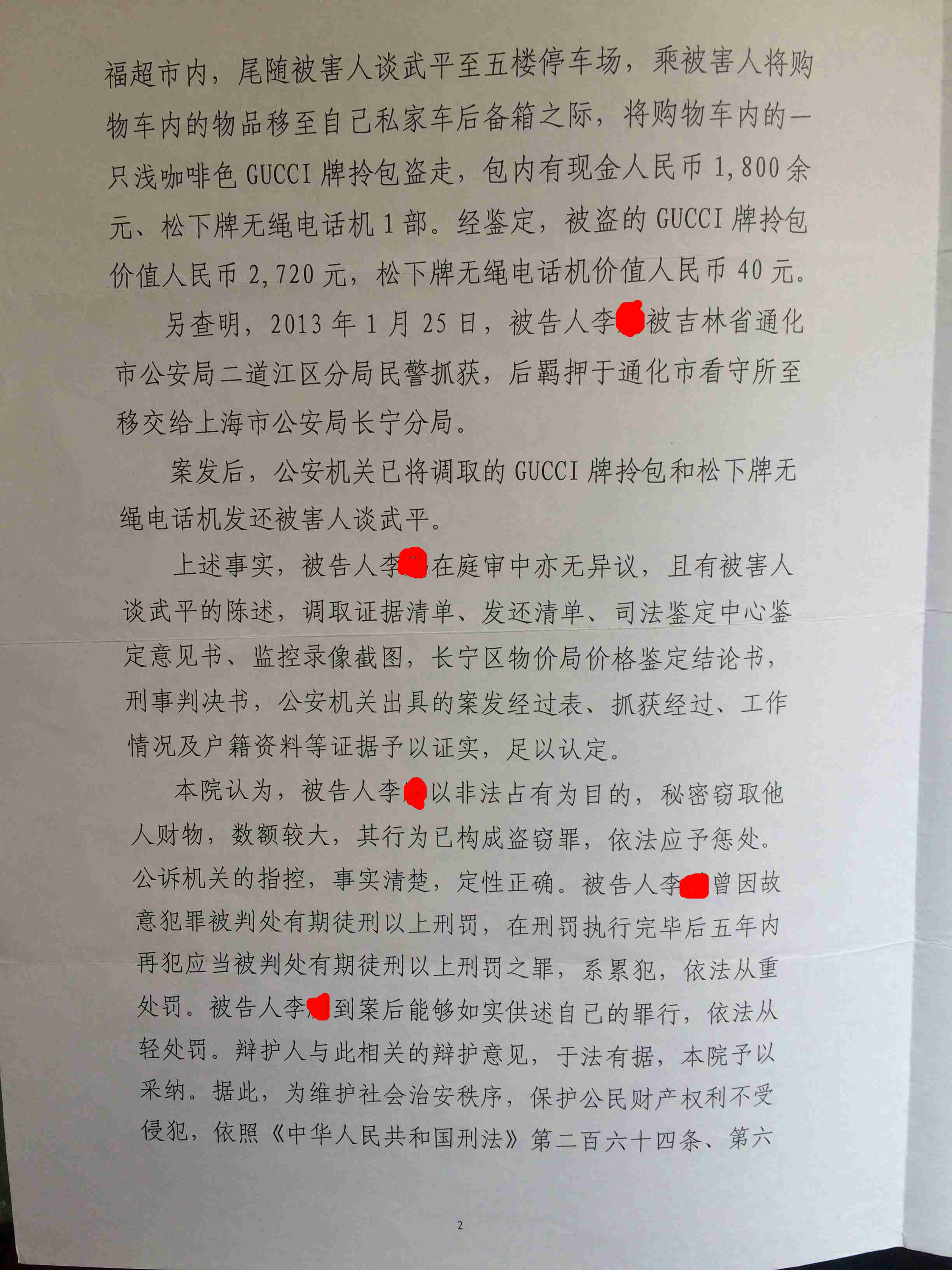 对于犯罪事实,因为有视频录像,所以没有什么悬念, 我们代理案件后,律师把主要注意力放在质疑具体盗窃的金额上,只要认定的盗窃金额不是那么大,何许还有一点生机,因此,律师多次以证据不足,不符合法定要件为由向检察院提出异议。最终,检察机关接受了该意见,按照我们提出的金额起诉,最终法院也同意按照律师意见,按照盗窃4千多元来定案,被告人李某最后仅仅被判处有期徒刑10个月,这个案子量刑期从可怕的十年以上降为十个月,整个代理过程相当成功。