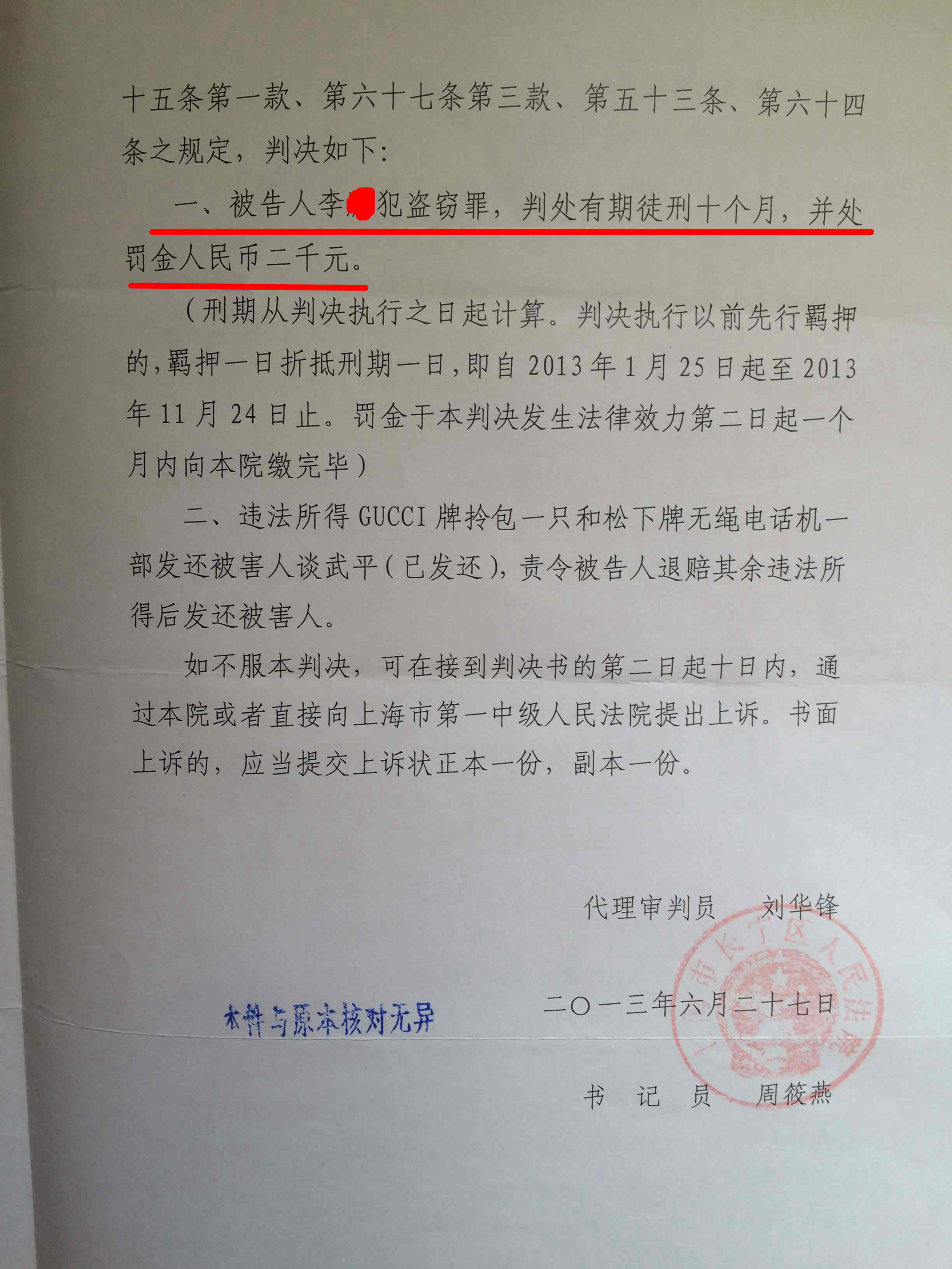 本案是2013年初办理的一起盗窃案,作案情节本身并不复杂,属于普通尾随盗窃,盗窃事实清楚,有录像为证,争议在于,公安逮捕期间根据报案人的报案,认定被盗金额17万余元。按照当时上海法院盗窃罪量刑指南(试行) (沪高法[2007]197号)的规定,盗窃金额超过十万元,属于数额特别巨大,对应的刑期在10年以上,且当事人有盗窃前科,系累犯,会被从重判刑。情况非常糟糕。